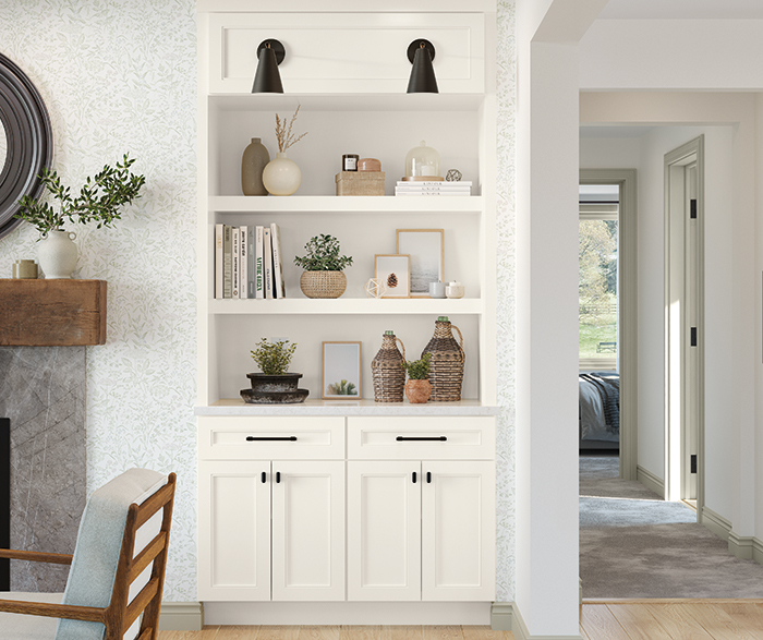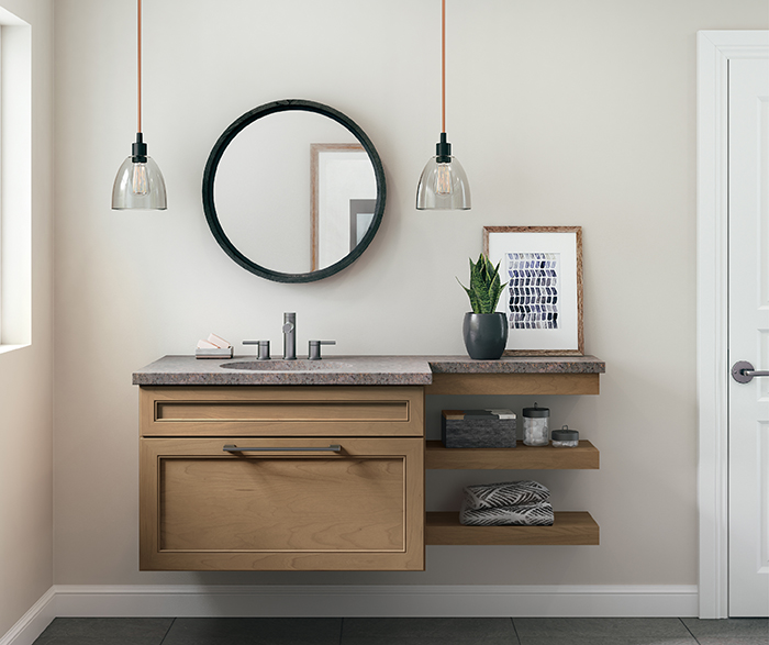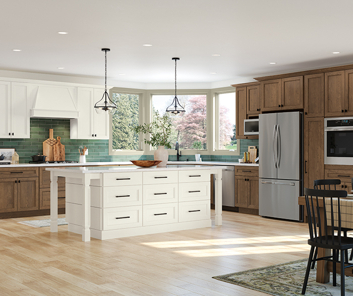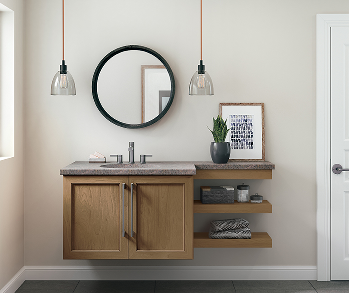 Product photography and illustrations have been reproduced as accurately as print and web technologies permit. To ensure highest satisfaction regarding door styles and finishes, we suggest you view an actual sample from your nearest Lowe's for best color, wood grain and finish representation. When a Painted Color or Painted Color with Artisan Glazing is specified, the door and/drawer front center panel may be constructed of Medium Density Fiberboard (MDF), except when Storm finish, Farmington or Peyton door styles, or when Heirlooming is specified.