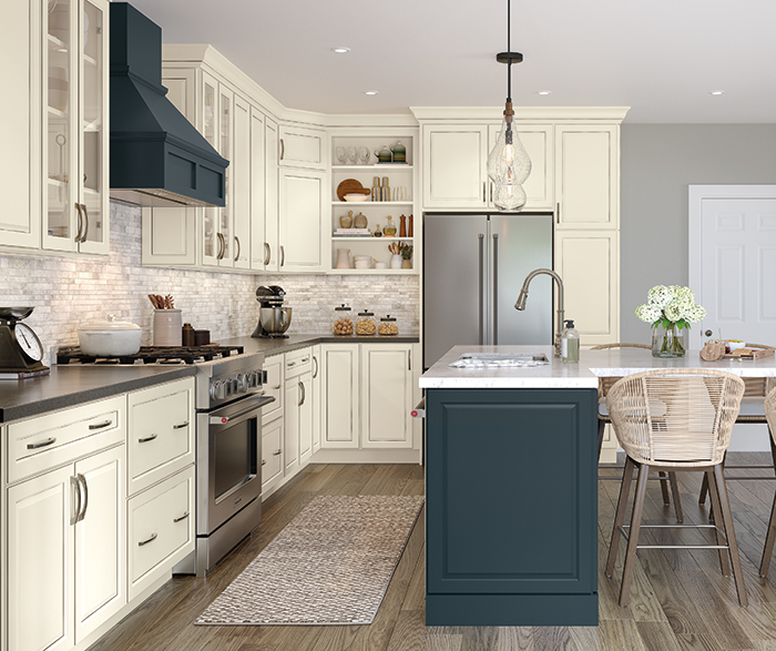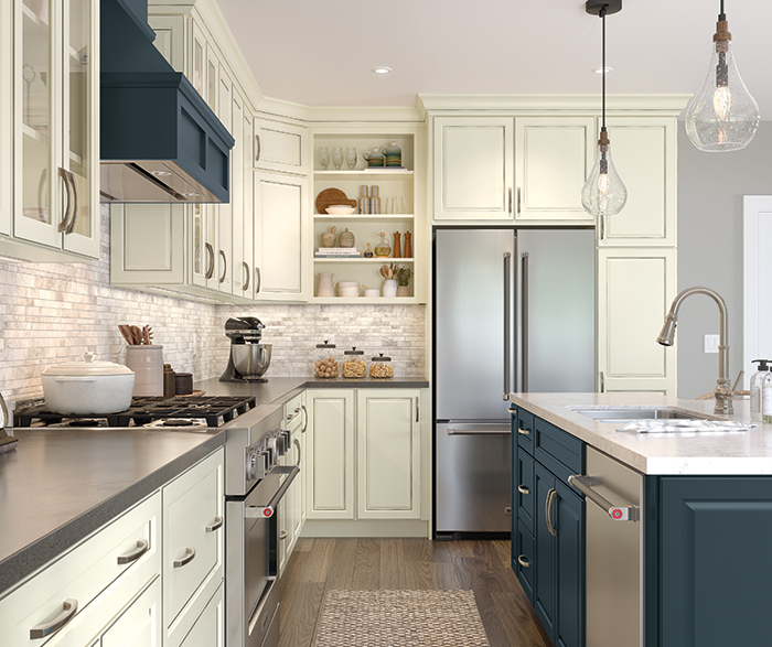 Product photography and illustrations have been reproduced as accurately as print and web technologies permit. To ensure highest satisfaction regarding door styles and finishes, we suggest you view an actual sample from your nearest Lowe's for best color, wood grain and finish representation. When a Painted Color or Painted Color with Artisan Glazing is specified, the door and/drawer front center panel may be constructed of Medium Density Fiberboard (MDF), except when Storm finish, Farmington or Peyton door styles, or when Heirlooming is specified.