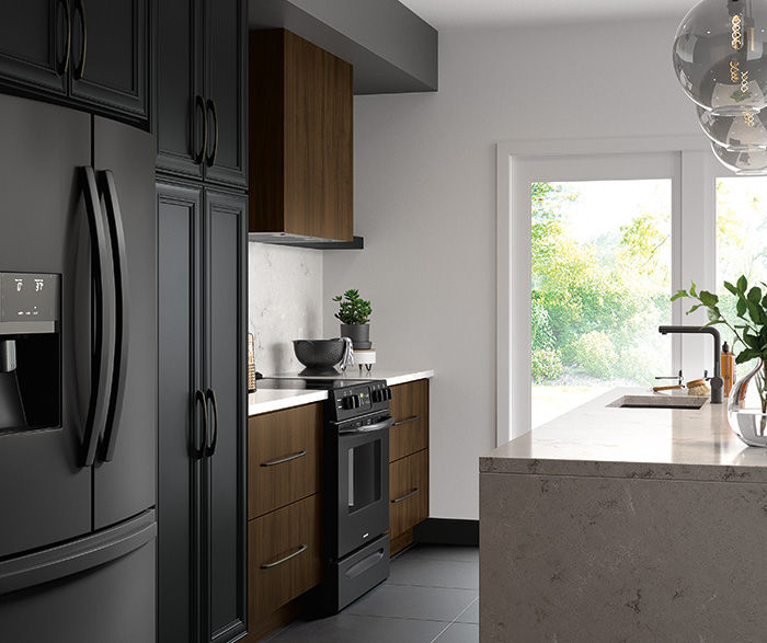 Product photography and illustrations have been reproduced as accurately as print and web technologies permit. To ensure highest satisfaction regarding door styles and finishes, we suggest you view an actual sample from your nearest Lowe's for best color, wood grain and finish representation. When a Painted Color or Painted Color with Artisan Glazing is specified, the door and/drawer front center panel may be constructed of Medium Density Fiberboard (MDF), except when Storm finish, Farmington or Peyton door styles, or when Heirlooming is specified.